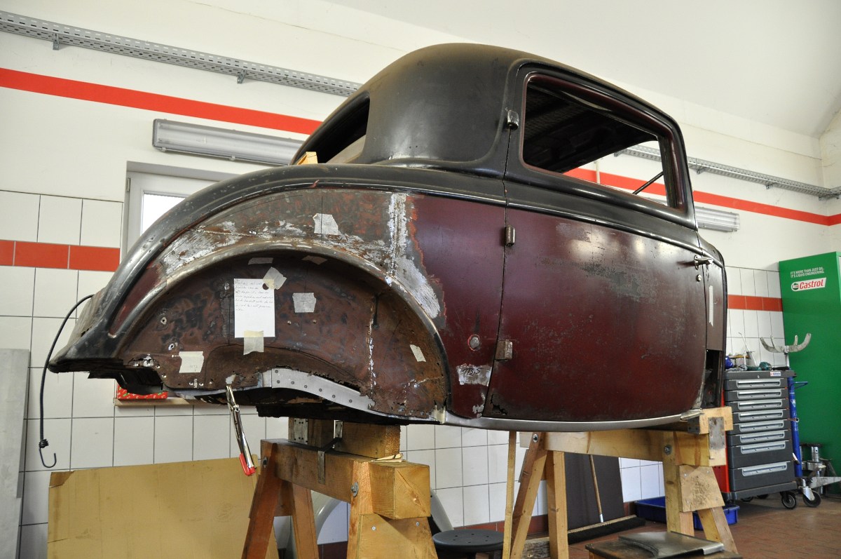 Am Wochenende haben wir u.a. unseren Freund Hermy und dessen scharfes Fordprojekt besucht. Seit geraumer Zeit wird in "Hermy's Werkstatt" ein 32er Ford 3 Fenster-Coupe wieder auf die Beine gebracht. Zudem handelt sich bei diesem Projekt um ein völlig unangetasteten 32er mit Originallack!!!